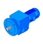 Üç kademeli, helis alın dişlili, monoblok gövdeli, motorlu, flanşlı redüktör